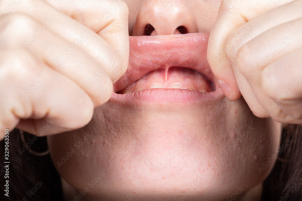 Medical inspection of the superior labial frenulum to evaluate the need for frenectomy oral surgery