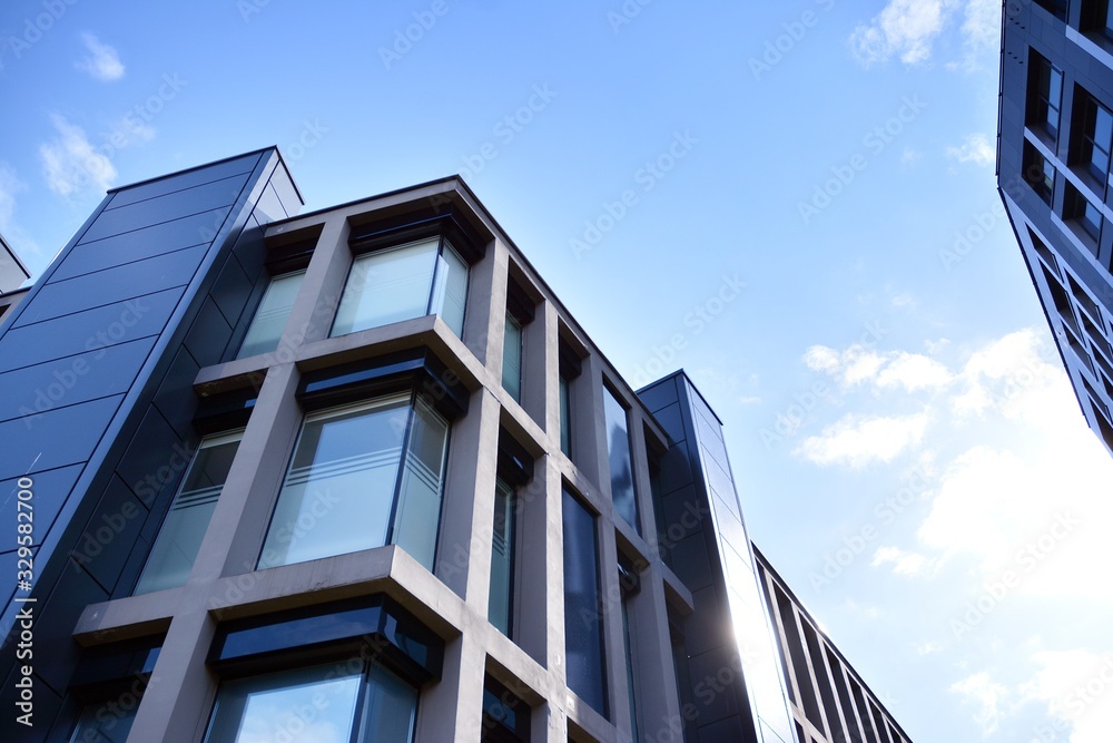 Modern office building facade abstract fragment, shiny windows in steel structure