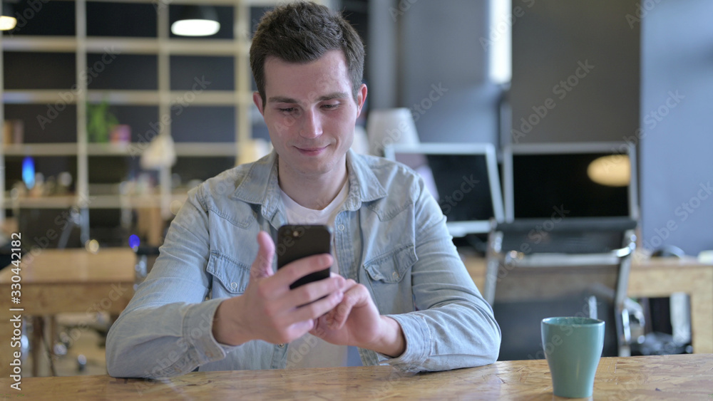 The Attractive Young Designer using Smartphone in Modern Office