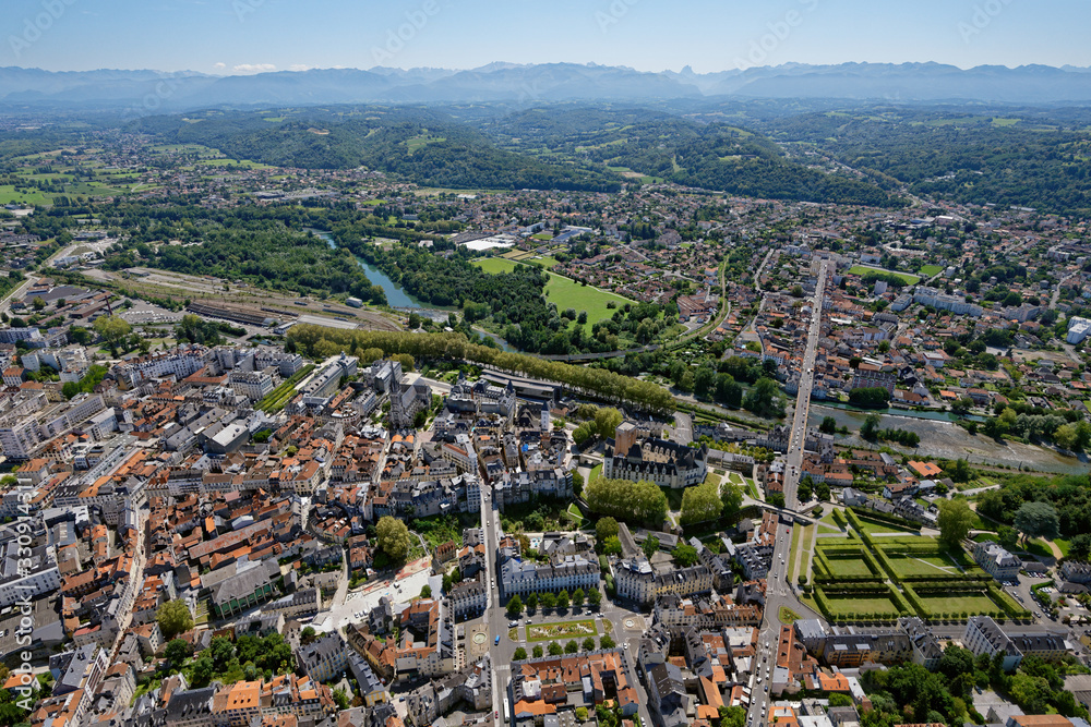 Aerial view of central Pau and the Boulevard des Pyrénées from the north