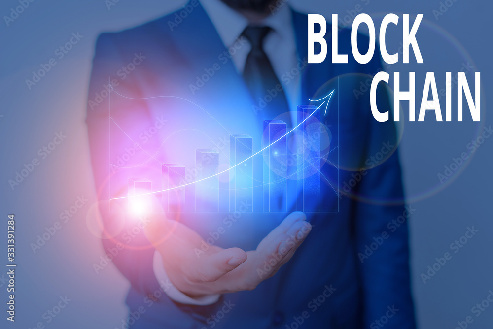Conceptual hand writing showing Block Chain. Concept meaning system in which a record of transactions made in bitcoin
