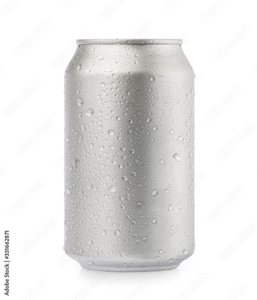 wet metal aluminum beverage drink can isolated on white background clipping path. photography