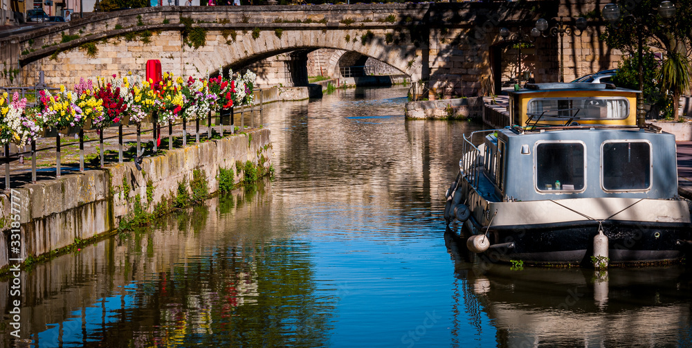 Small barge on the robine canal ,Narbonne,France.