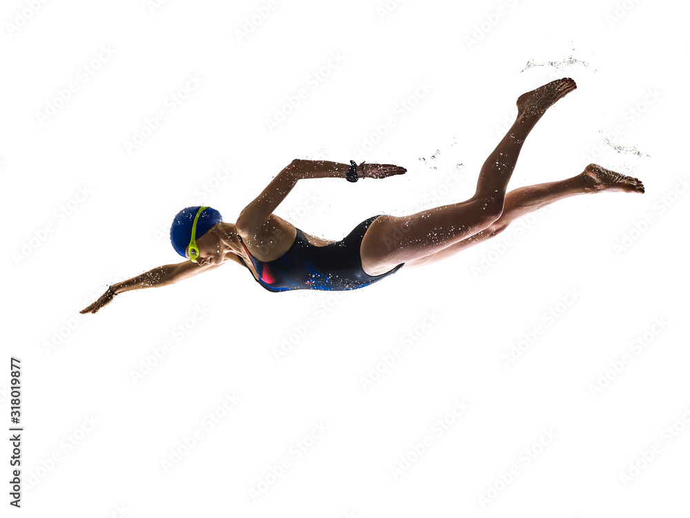 New modern green string trimmer with Gasoline-engine isolated on white background. Vertical shot.