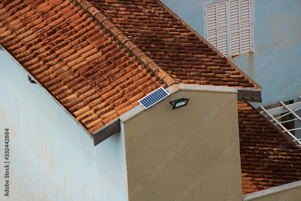 Solar panel powering light in a house working on solar power