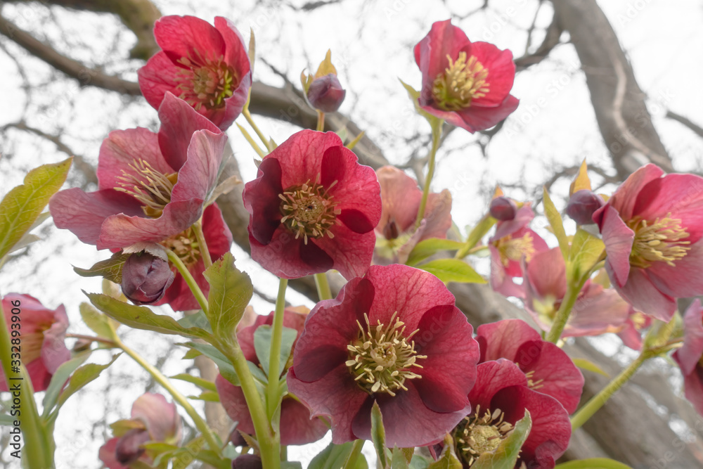 Christrose rote Blüten Fokus unten