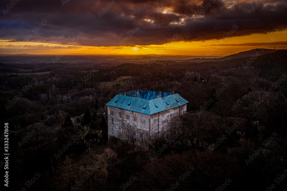 Houska Castle is an early Gothic castle. It is one of the best preserved castles of the period. Notable features include a predominantly gothic chapel, green chamber with late-gothic paintings.
