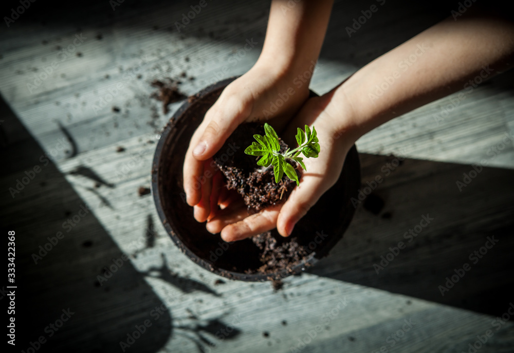 children planting tomato seedling