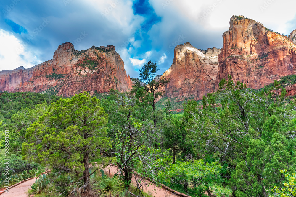 View from overlook Court of the Patriarchs, the Three Patriarchs in Zion National Park