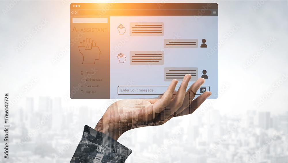 Double exposure of creative Bitcoin symbol hologram with computer on background. Mining and blockchain concept