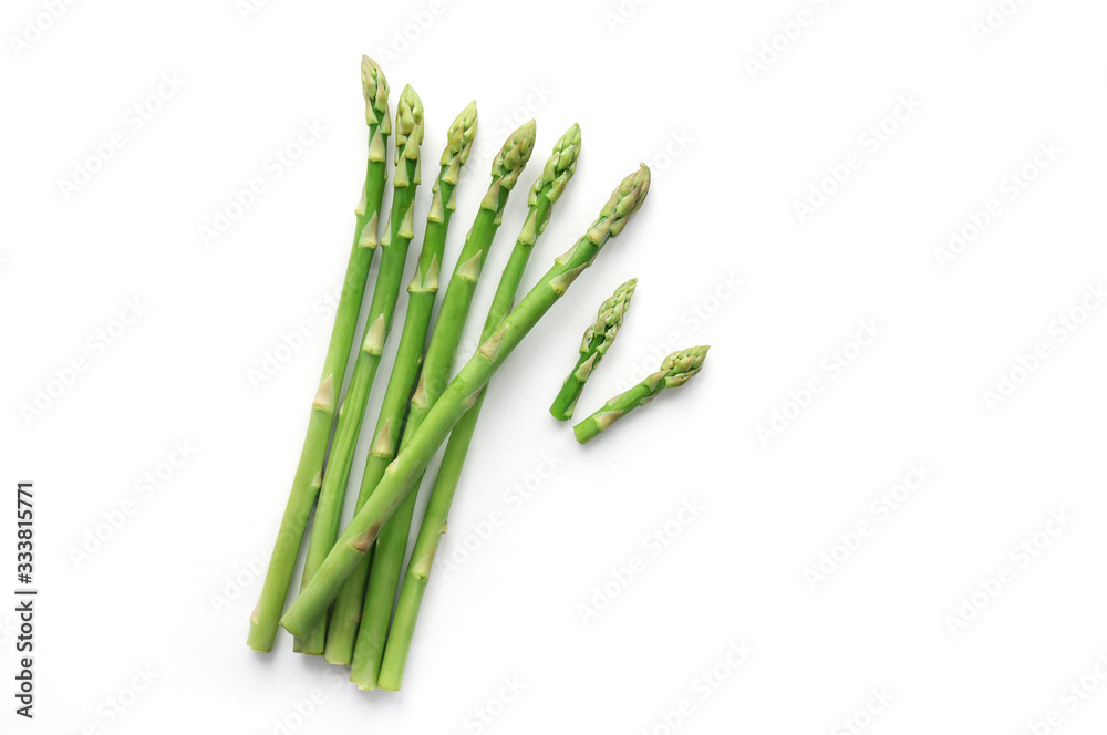 Isolated green fresh sliced asparagus. Top view.