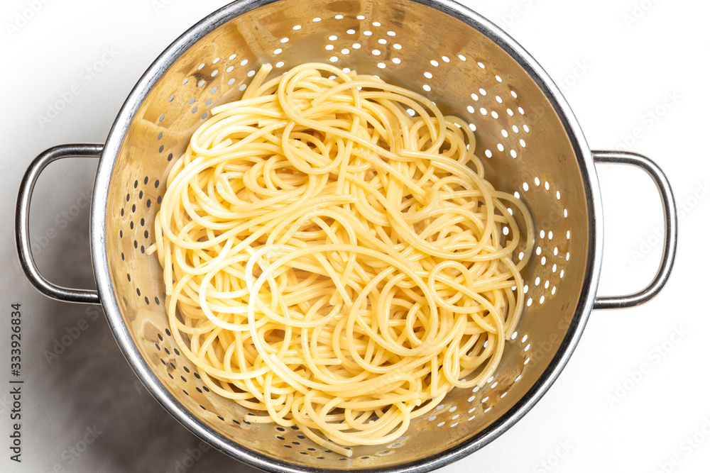 spaghetti pasta in a colander