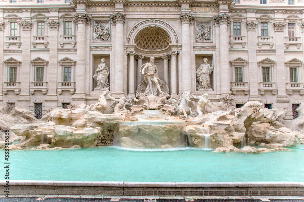 Rome, Italy. Trevi fountain in the morning. Rome baroque architecture.