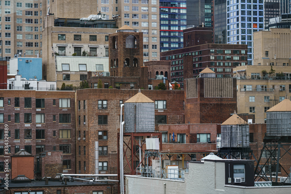 New York City buildings details. Manhattan buildings rentals. Empty streets of Manhattan in New York.