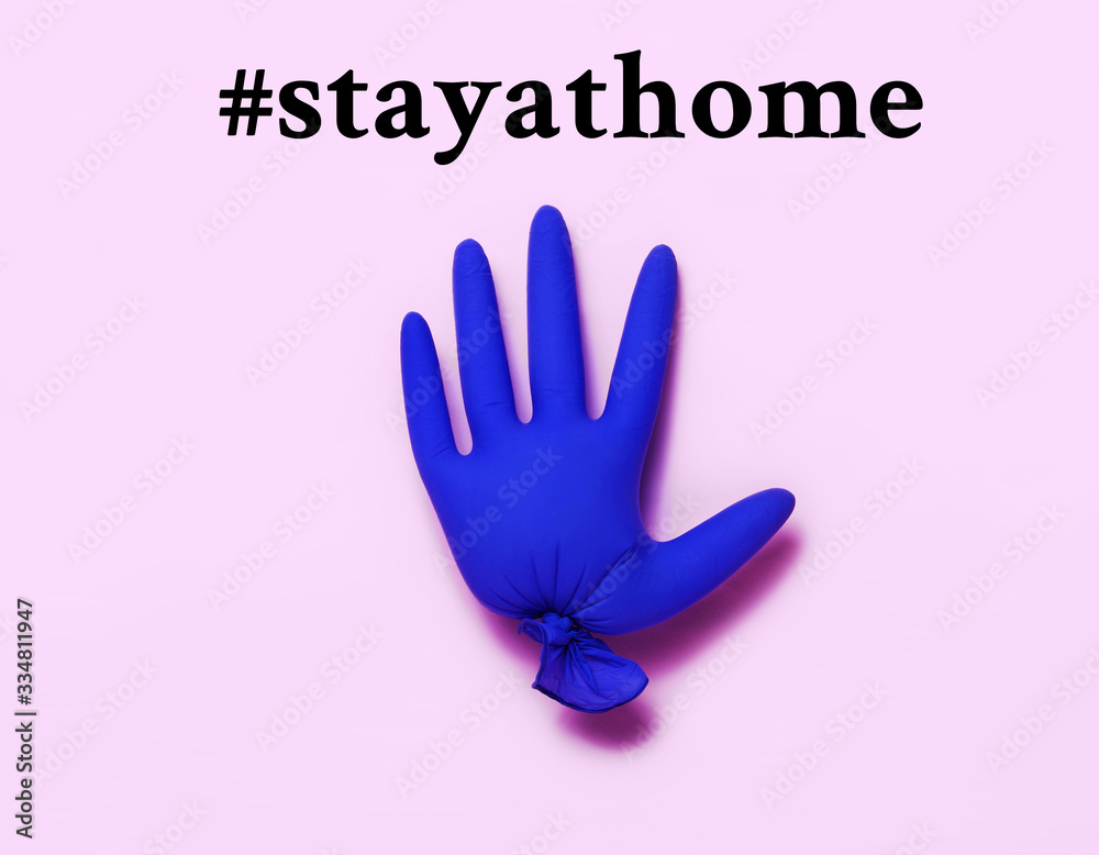 Windblown blue medical glove shows stop symbol.Don't panic about corona virus.