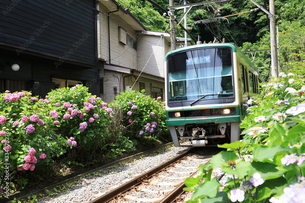 Enoden and Hydrangea Kamakura Japan