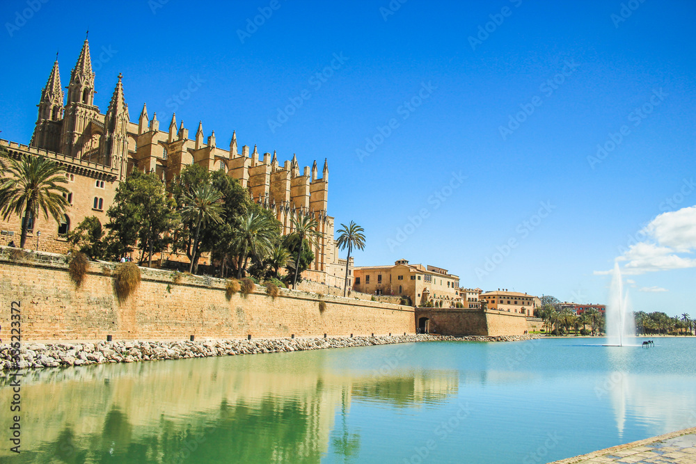 Palma, Mallorca / Spain - March 26 2018: Cathedral of Santa Maria of Palma also known as La Seu, located in the capital Palma de Mallorca, both the city and the church are popular with tourists
