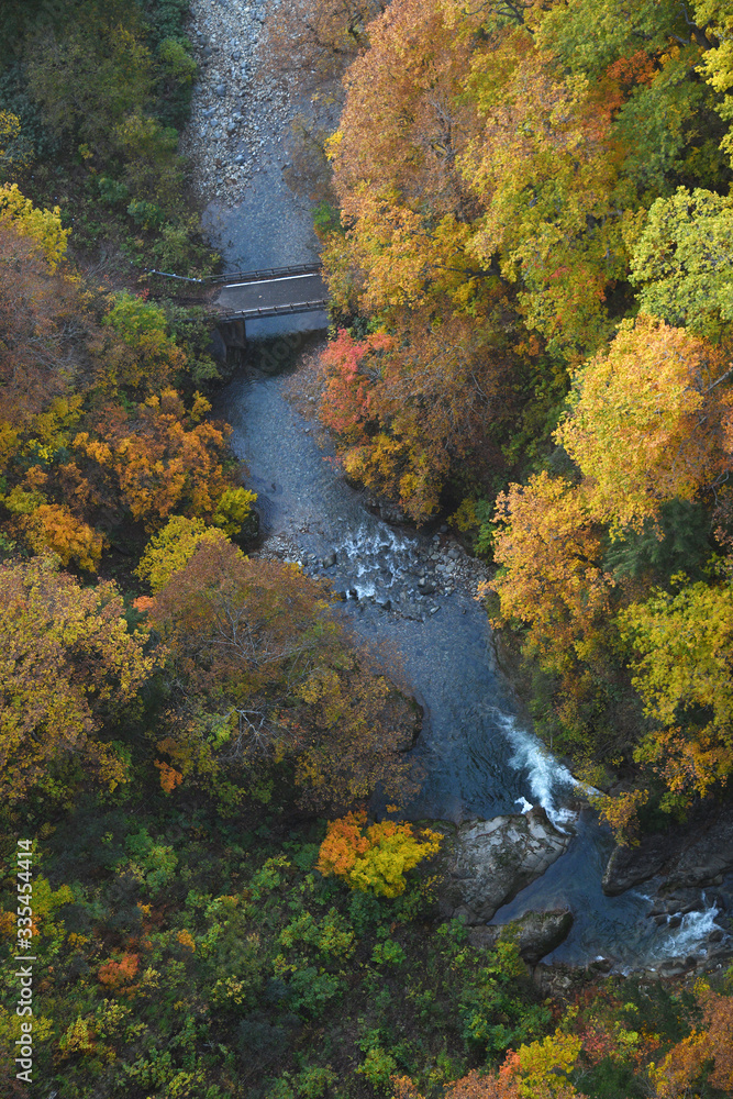 Autumn forest in a river valley in Tohoku region near Aomori