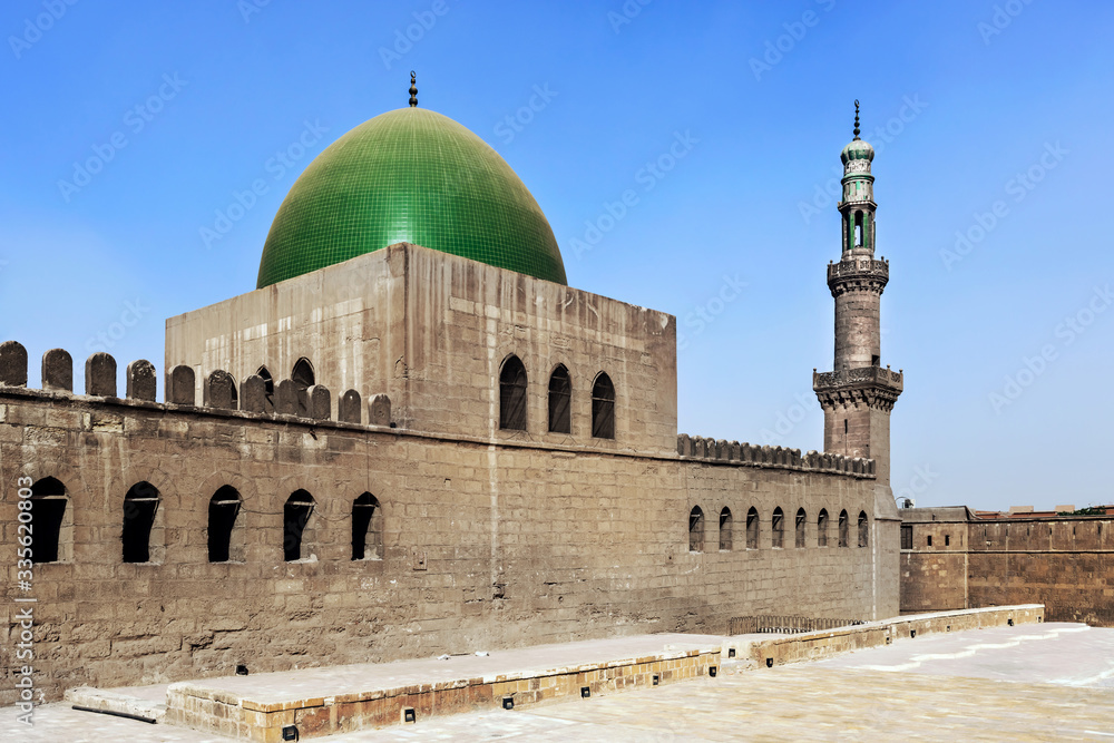 Green dome of Al-Nasir Muhammad Mosque inside the Saladin Citadel, Cairo, Egypt, Africa