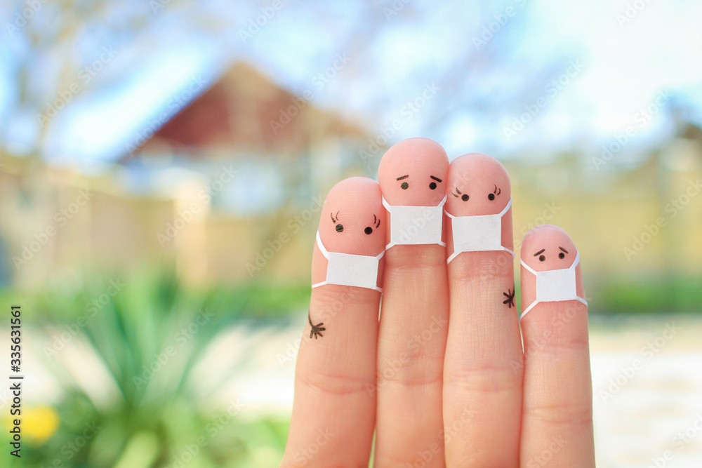Fingers art of family with face mask.