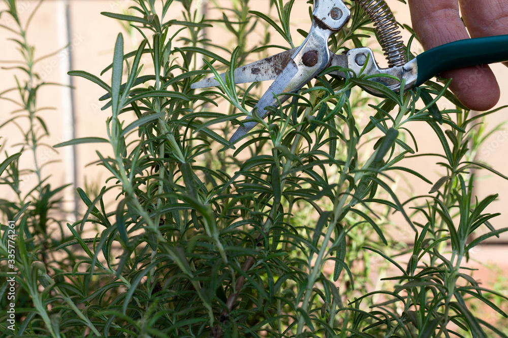 orto la potatura e cura delle piante con forbici e una mano in primo piano