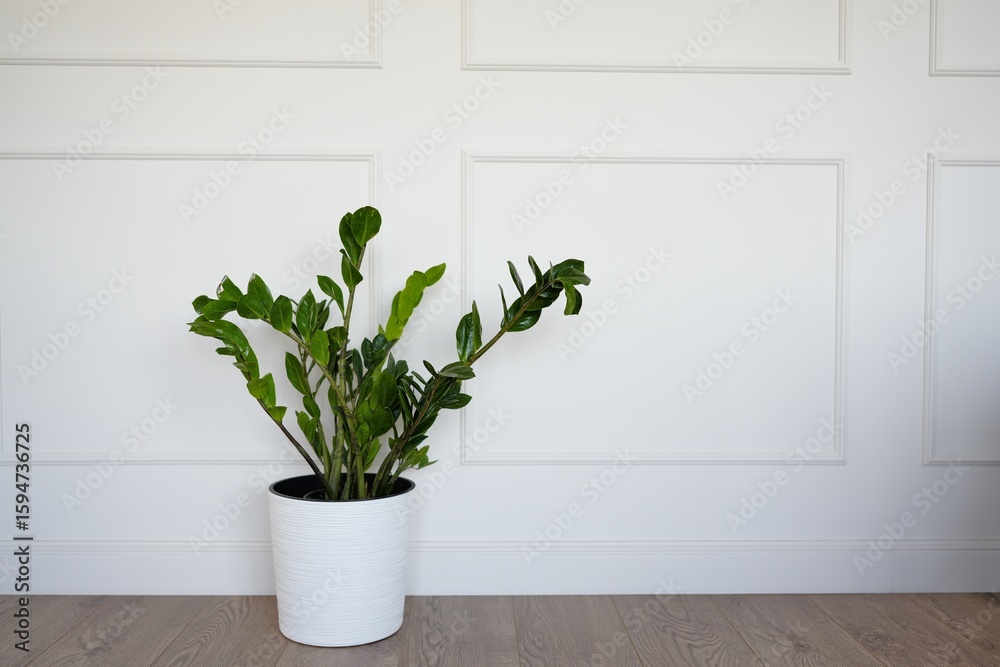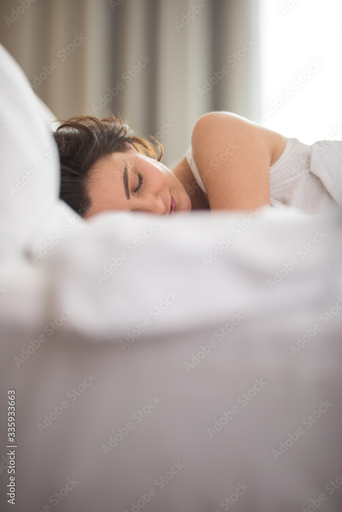 Full length portrait of young Asian woman speaking by phone and smiling happily while standing in empty white room with cardboard boxes, moving and relocation concept, copy space