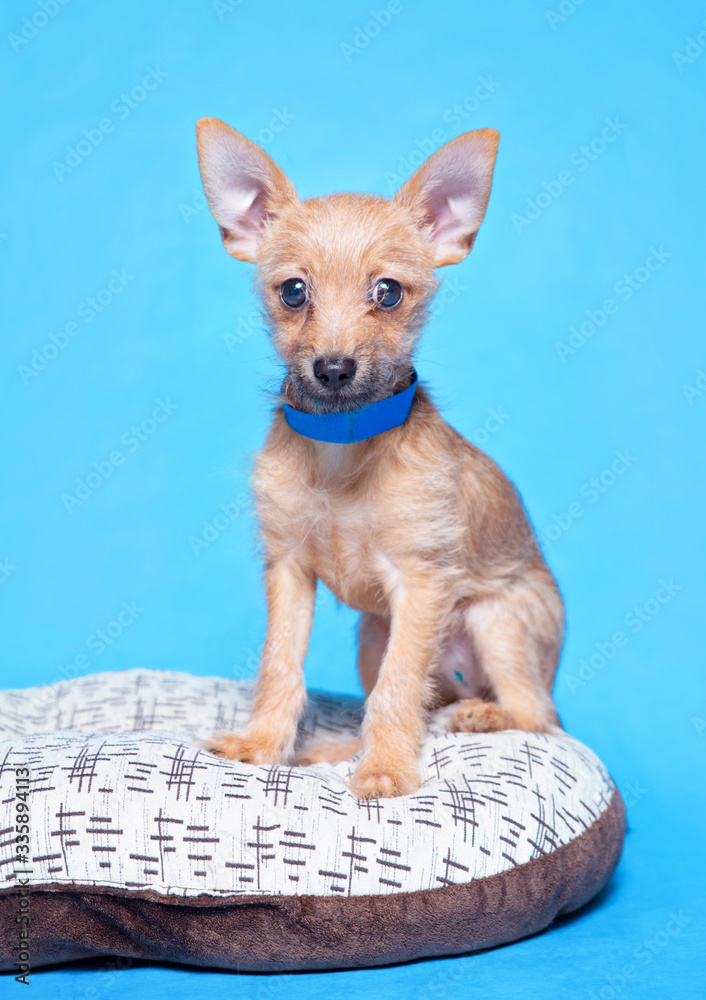 cute dog isolated on a colorful background in a studio shot