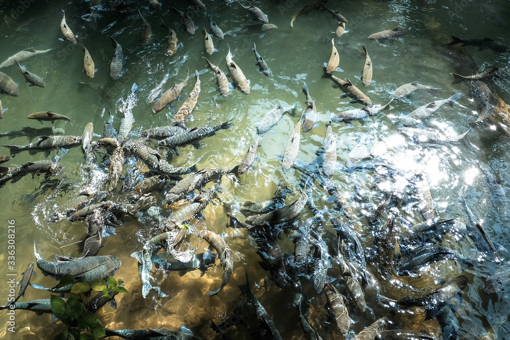 Large flock of fish in pure water In some caves in other provinces in Thailand.