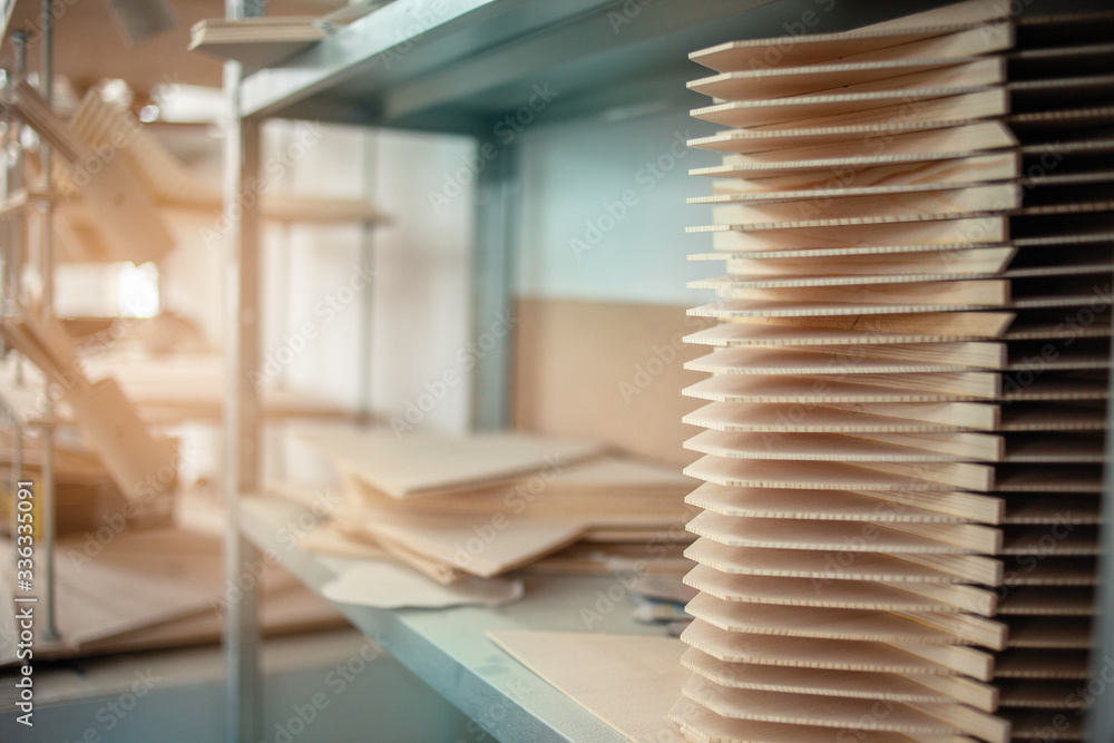 Wooden blanks. Factory, wood products. Workshop for the manufacture of wooden products