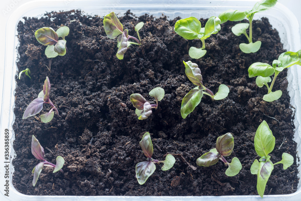 young Basil greens grown from seed