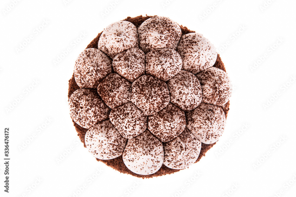 Chocolate-coffee cake with cocoa on white background