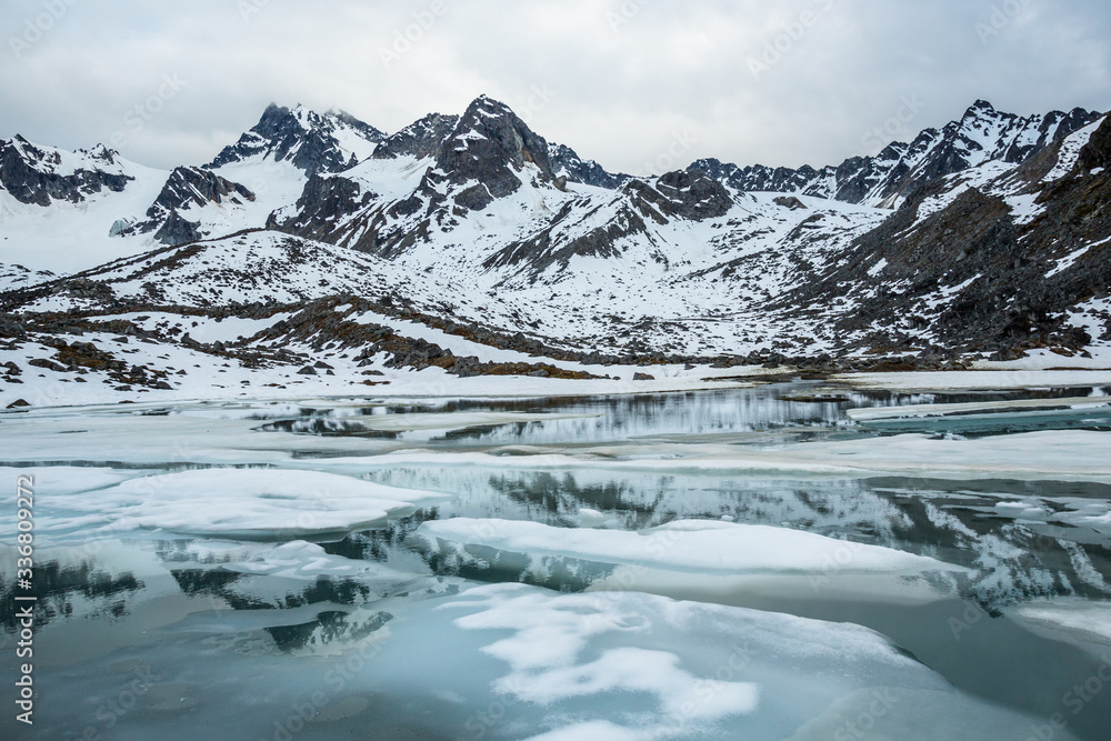 Spring thaw on a backcountry lake below Montana Peak. Remote Alaskan wildernes.