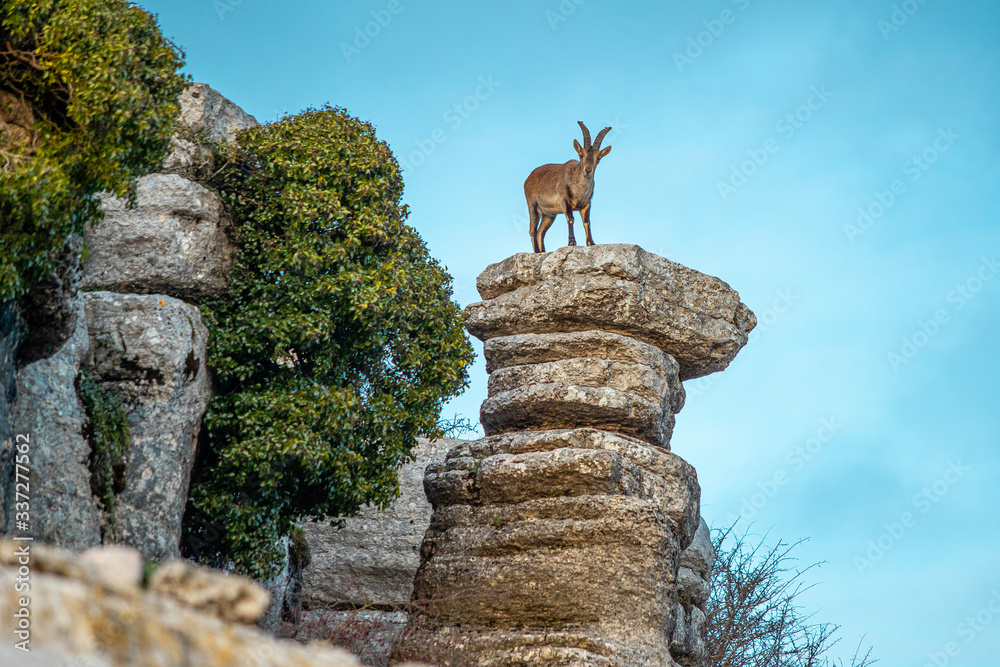 mountain goat in El Torcal De Antequera . This natural park is located near Antequera. Spain.