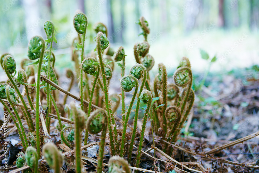 Wild young shoots of Pteridium aquilinum fern, inhibited common fern , also known as eagle fern and Eastern fern.