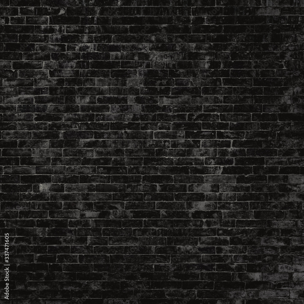 Black brick wall texture, square crop dark background