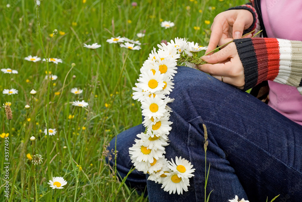 weaving a daisy wreath