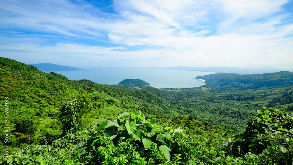View of the jungle and the ocean from the Hai Van pass in Vietnam