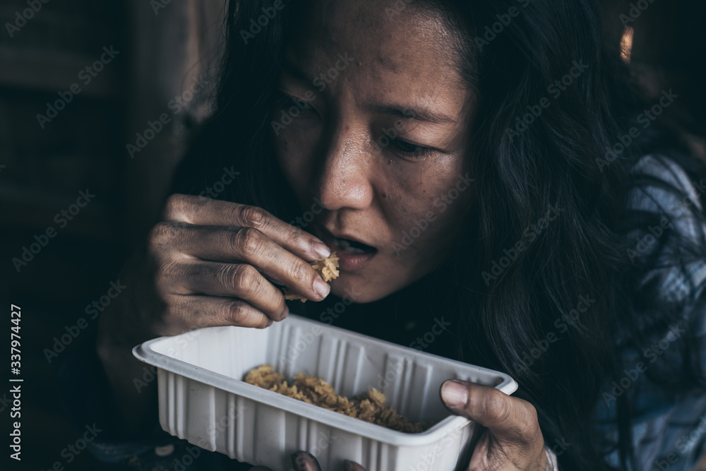 poor people,homeless or beggar begging for help sitting at dirty slum.concept for poverty hunger,human rights,donate and charity for underprivileged children in third world