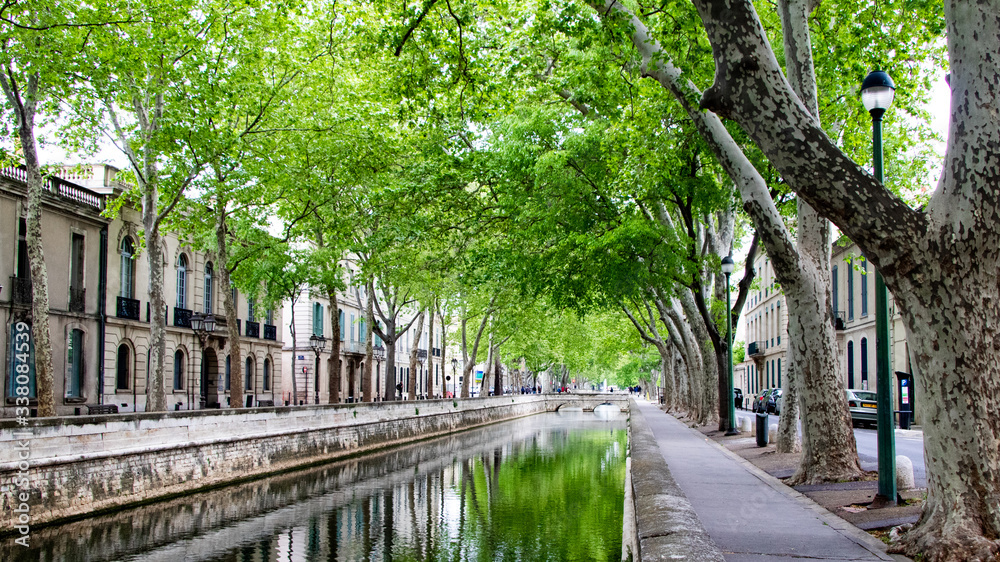 Canal du quai de la Fontaine à Nîmes sous les platanes (Occitanie, France)