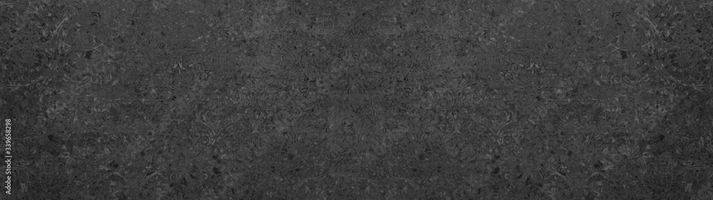 Old black anthracite vintage shabby patchwork motif tiles stone concrete cement wall texture background banner panorama