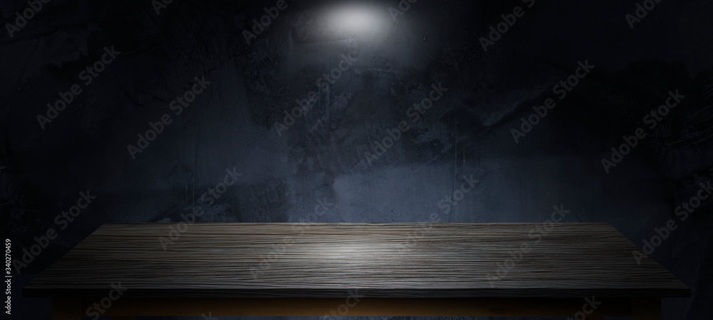 Texture empty brown wood table top texture in room black floor is made of dark plaster for interior decoration .used as background studio wall for display your products.