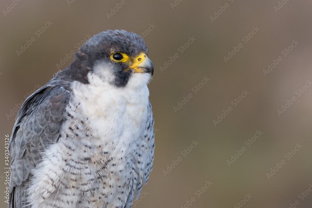 A close up portrait of a wild nordic peregrine falcon (Falco peregrinus calidus)