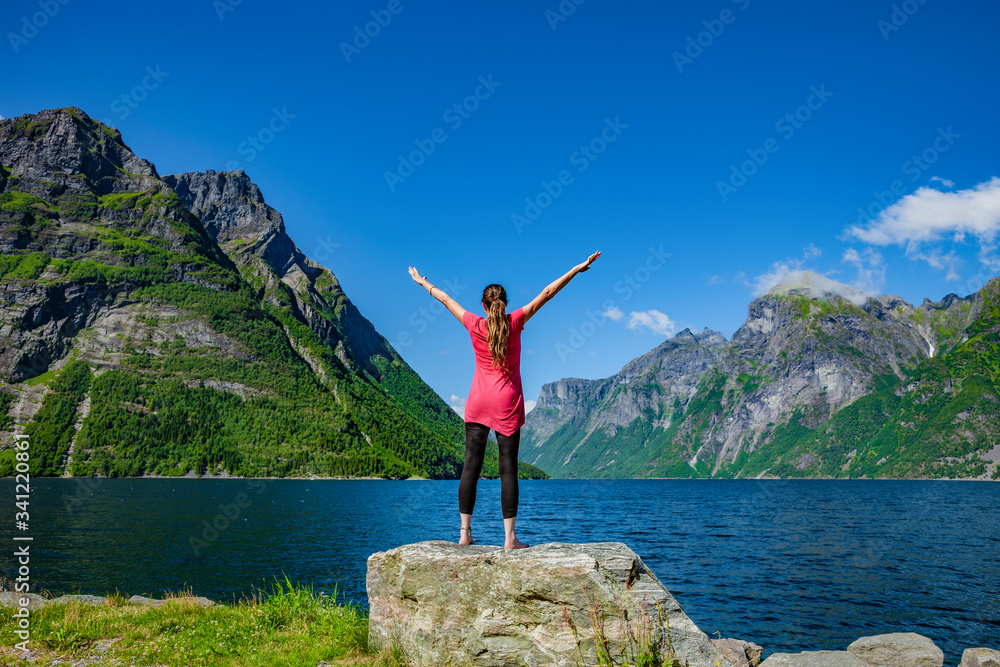 Blick auf den Hjørundfjord in Norwegen, Skandinavien