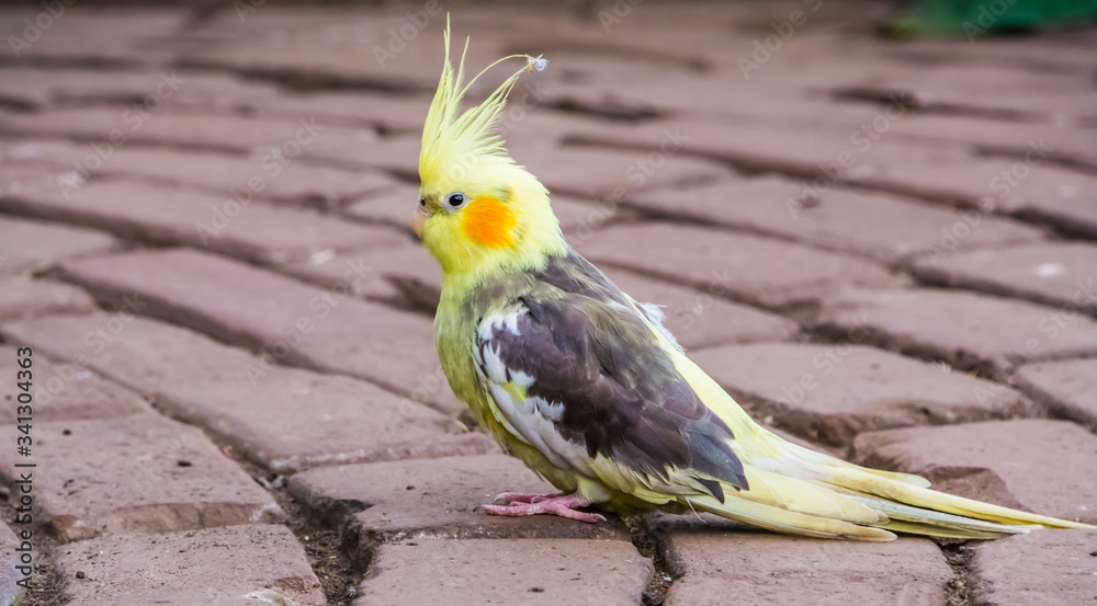 portrait of a cockatiel in closeup, popular pet in aviculture, tropical bird specie from Australia