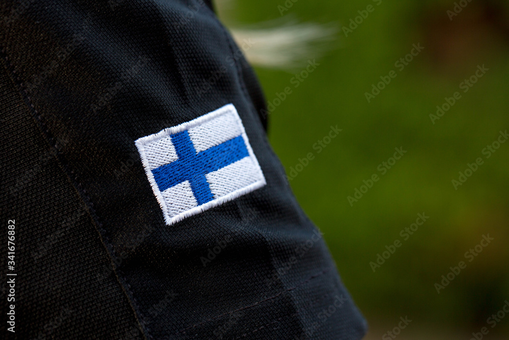 Flag of Finland on military uniform. Army, troops, soldiers. Collage.