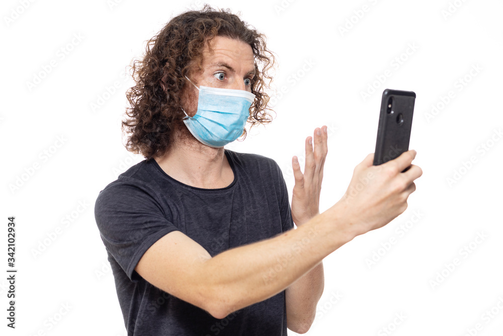 Buisnessman in medical mask. Pandemic coronavirus epidemic covid-19 quarantine isolated phone