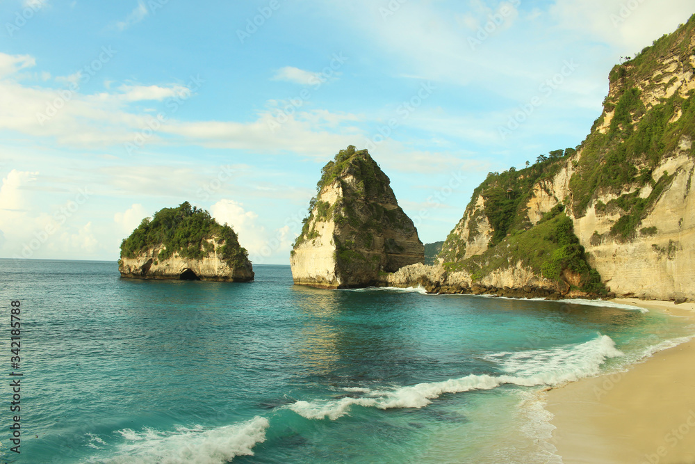 Tropical island in the sea during day time. Nature landscape background. Diamond Beach, Nusa Penida Island, Bali, Indonesia