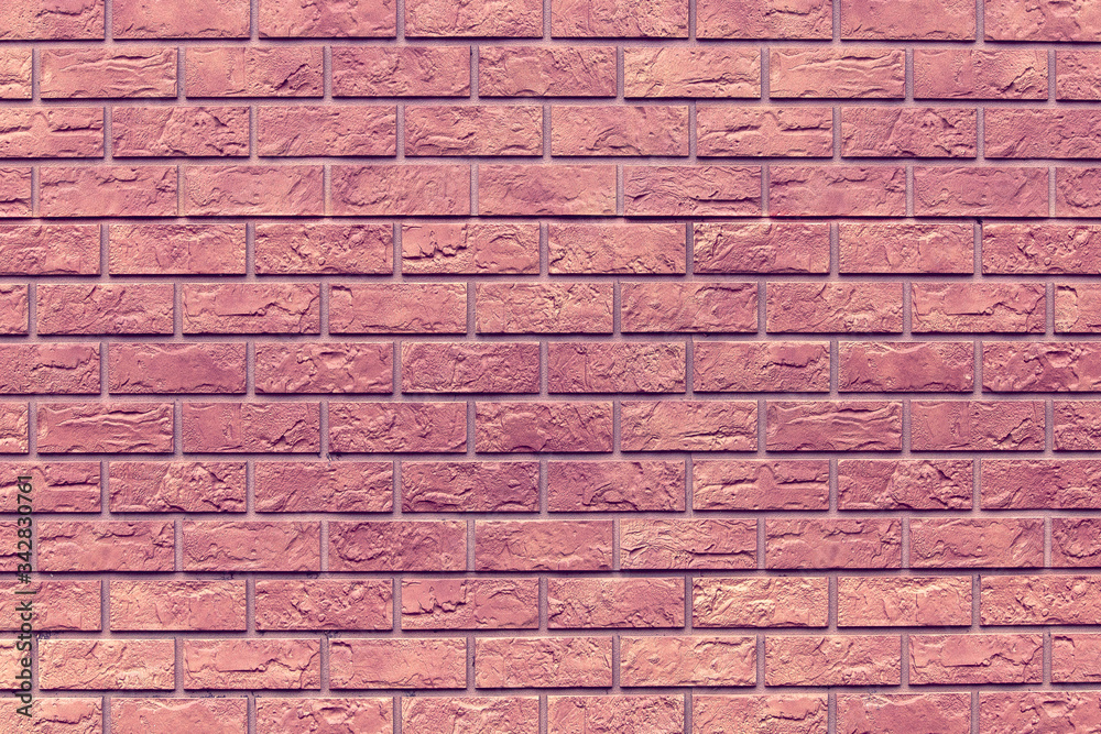 Pink brick texture and background. Purple wallpaper for designer. Rectangular photo, image.