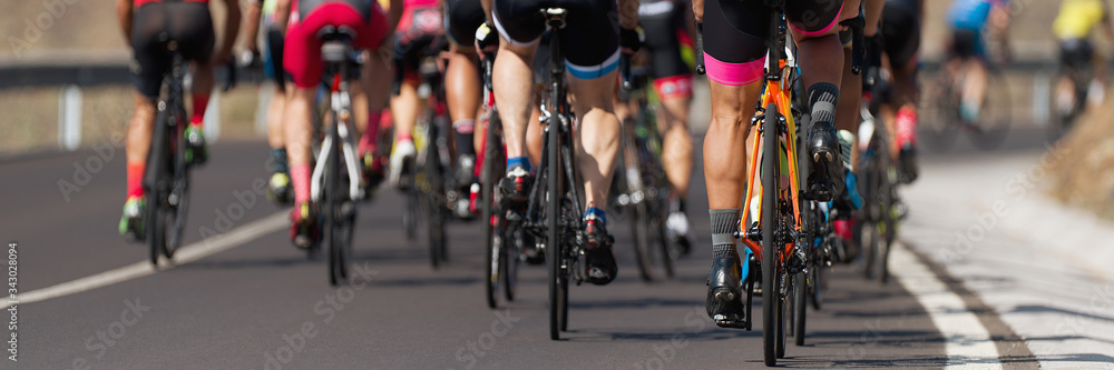 Cycling competition,cyclist athletes riding a race, the peloton climbing the mountain