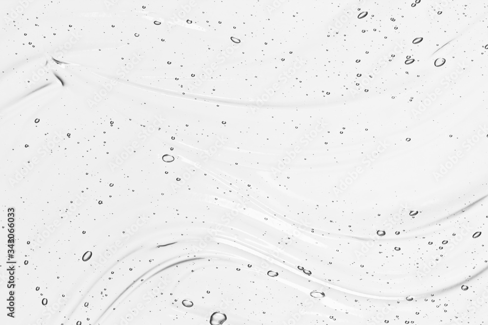 Hyaluronic acid serum texture. Beauty skin care liquid gel background. Clear cosmetic cream with bubbles closeup